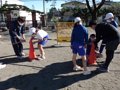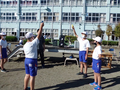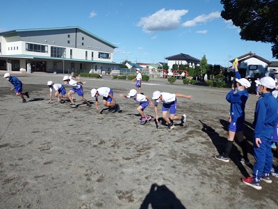 大きな声で「よーい」が言えるように、何度も練習しました。
