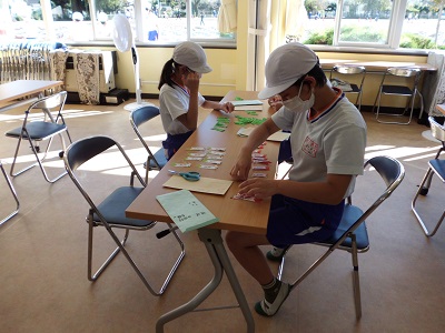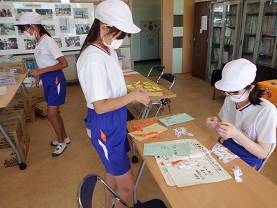 こちらは6年生が運動会当日に付ける記章を準備しているところです。