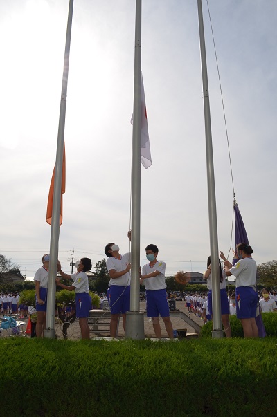 校旗、国旗の入場です。