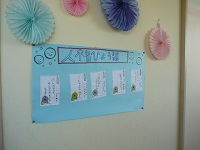 代表児童の標語は、イングリッシュルームと音楽室の間に掲示しています。