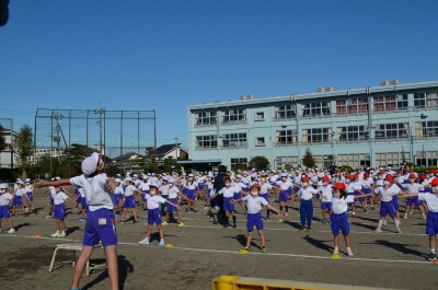 開会式のラジオ体操では、6年生が手本を見せてくれました。