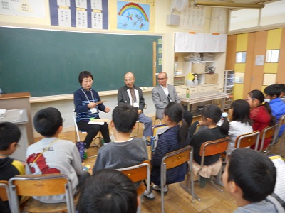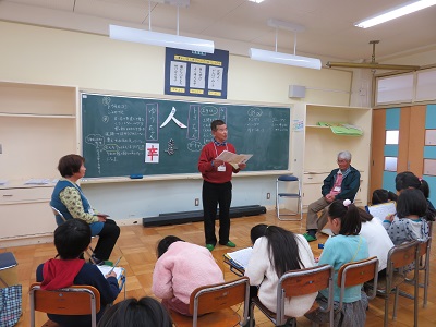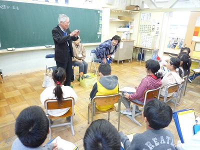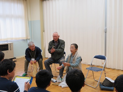 3年生が昔の生活や学校の様子などのお話を伺いました。