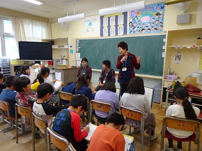 子供たちは、6つのグループに分かれ、30分ずつ2箇所で話を聞きました。