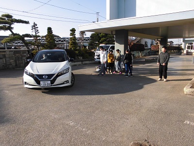 日産の電気自動車「リーフ」の仕組みを聞き、実際に乗せていただき、電気自動車の加速と静かさを体験しました。
