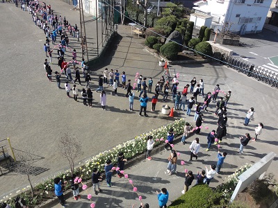 全員が花のアーチをくぐり終わった後、6年生から在校生へ、お礼の言葉がありました。