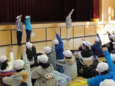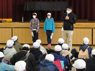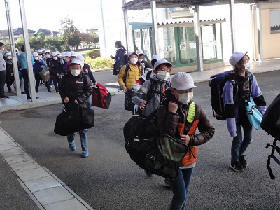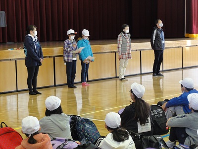 さあ、いよいよ出発です。出発式の様子一緒に行く先生方の紹介児童代表あいさつ校長先生のお話「エイエイオー」で、気合いを入れてもらいました。5年の先生からの諸注意大きな荷物と、期待とちょっぴりの不安を背負って、5年生全員そろって、宿泊学習に出発しました。