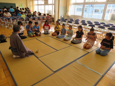 上三川町の出前授業で、6年生が茶道を体験しました。