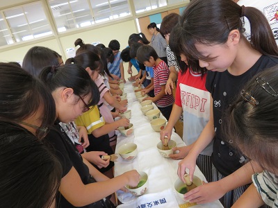 交代しながら6年生全員が、お菓子を食べ、お茶を点てる体験ができました。