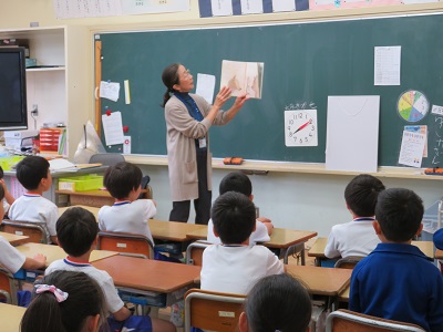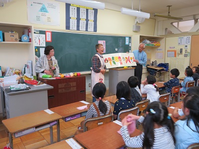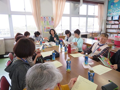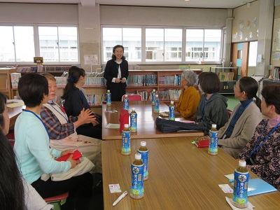 この読み聞かせが始まって、1年になります。地域の方は、本選びや読み聞かせの練習にかなりの時間を費やして準備しています。子供たちの真剣なまなざしが、とても嬉しいそうです。終了後、図書室に集まり顔合わせを行いました。みんながどんな本を読んでいるのか、まとめた資料を基に雑談をしたり、読み聞かせのポイントを確認したりと、とても和やかな時間でした。