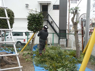 毎年、2月の寒い時期に、樹木の手入れを業者の方にお願いしています。