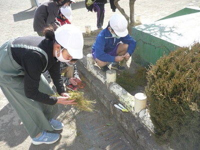 清掃の時間には、児童が枝や松葉集めに大活躍です。