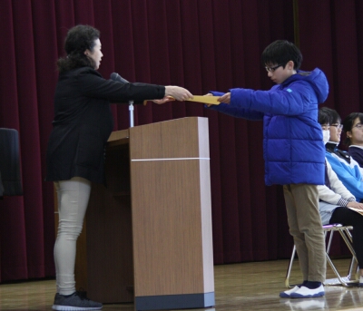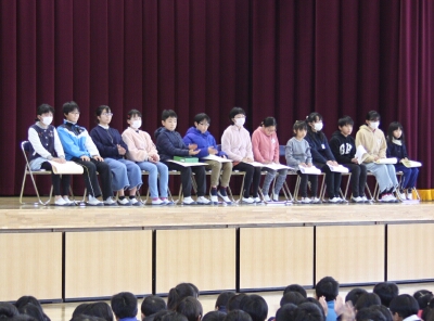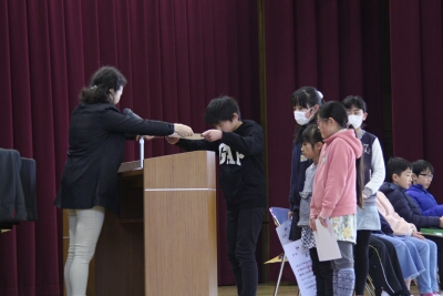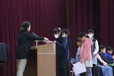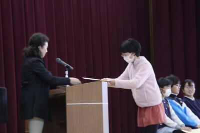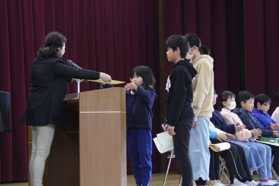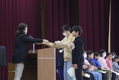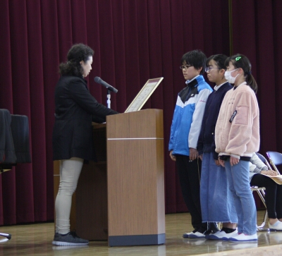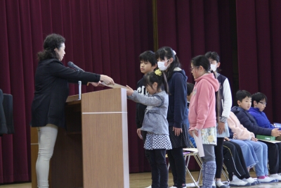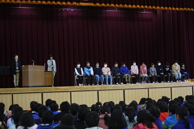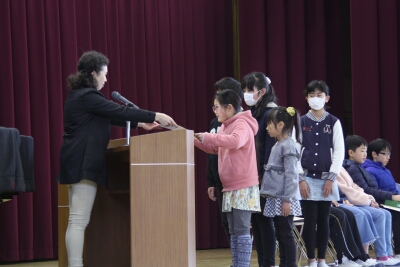 集会で、賞状伝達を行いました。