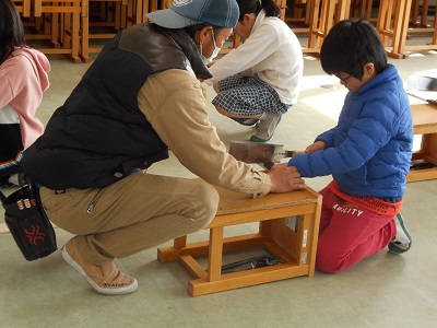 3年生は、初めてのこぎりを使うのに、丁寧に指導していただきました。