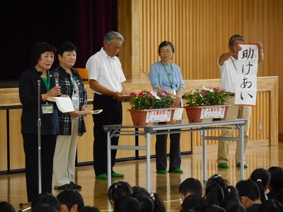 人権擁護委員の方が来校し、人権の花贈呈式が行われました。
