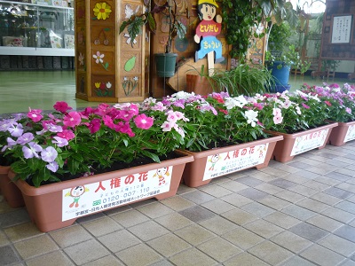 人権の花は、昇降口前や職員玄関に置いてあります。