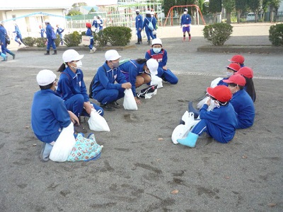 学校に戻ると、班ごとに振り返りをします。高学年が、今日の活動を言葉で低学年に伝えます。