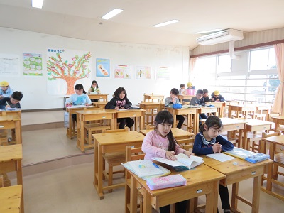 授業参観の後の学年懇談会に、多くの方に出席していただけるように、1~3年生の児童の預かりを行っています。