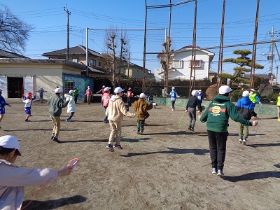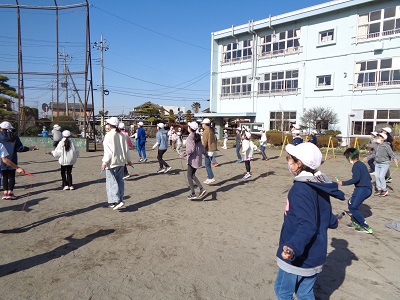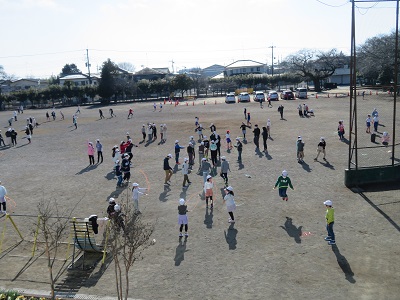 終わってからも、たくさんの児童がその場所に残り、なわとびを続けていました。