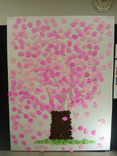 冬休みに、御家庭で作っていただいた花びらは、すてきな木になりました。