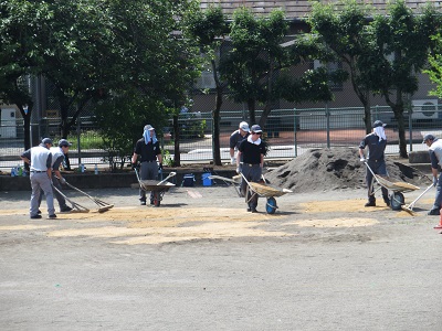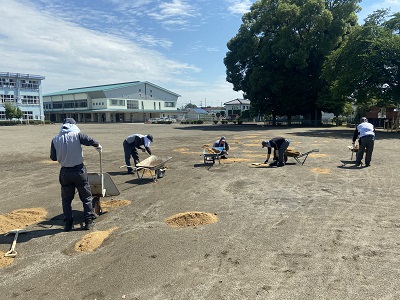 そして、でこぼこになっていた校庭を、日産自動車工場のボランティアの皆様が、整地してくださいました。