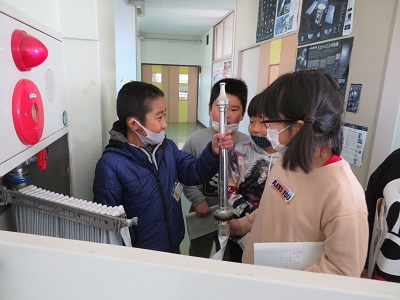 3年生の社会で、校内の消防施設の見学を行いました。