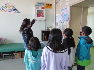 保健室には、心臓が止まった場合に使うAEDが設置されています。