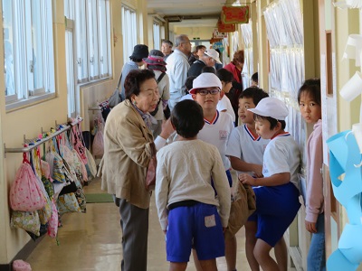 お孫さんの教室に入り、作品を見たり、お孫さんの友達とお話ししたり、とても楽しい時間だったようです。