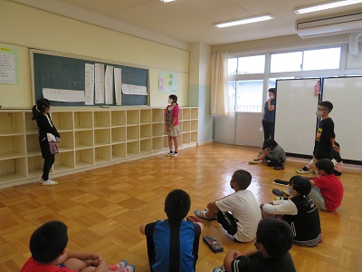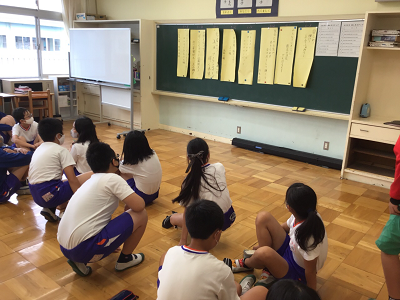 高学年も、中学年同様、代表委員が各クラスで決まったスローガンを持ち寄り話し合いました。