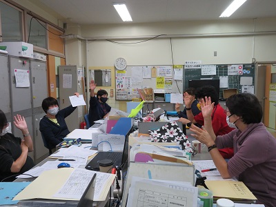 「上小オリンピックのテーマに“輝け”と入っているから、その言葉が入った方がいいと思います。」などと、とても建設的な意見交換後、多数決を採りました。