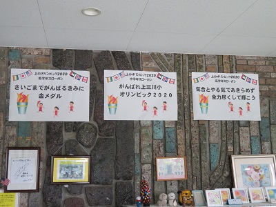 多数決の結果「がんばれ上三川小 オリンピック2020」に決まりました。