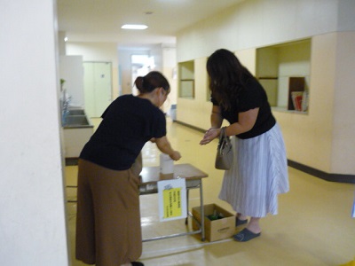 皆さん、夏休みの課題や児童作品を見ながら、待っています。