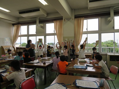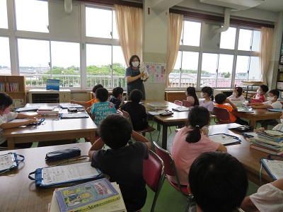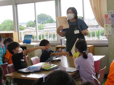 3年生が、図書室で司書の先生と一緒に、本の分類の学習をしました。