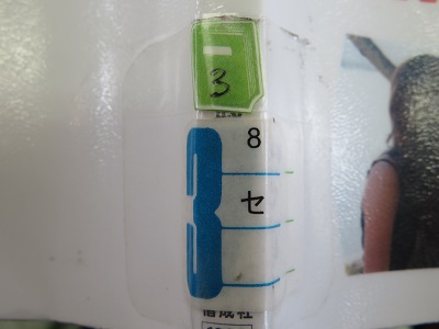 左側の青で印字された大きい“3”は、分類番号で、その上にある“3”が、3年生の必読図書の印です。