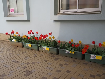 職員玄関のチューリップ