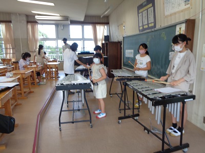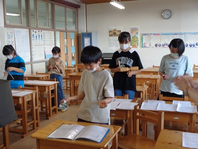 6年生が4、5年生に教えている姿が見られました。