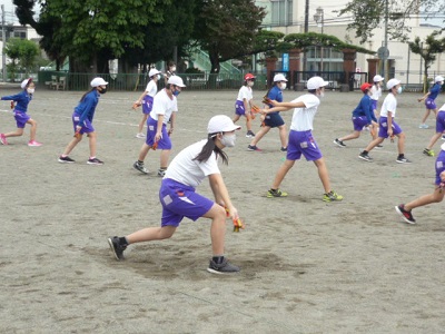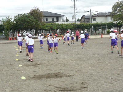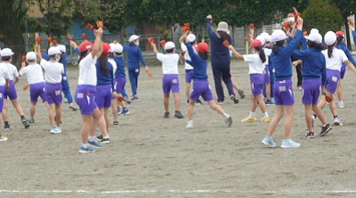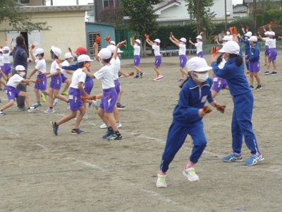 最前列の児童が踊ると、次の列の児童が前に出て踊ります。
