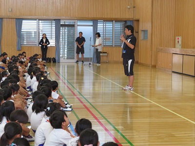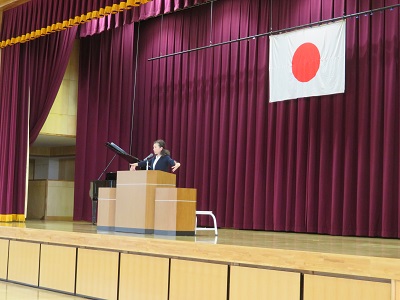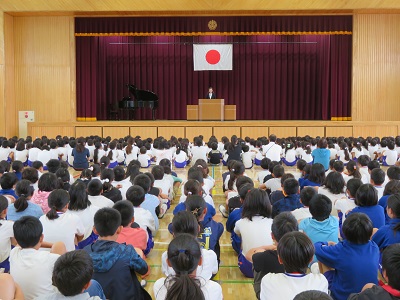 「上小は、子供たちと先生方、合わせて720人のファミリーです。一人一人が頑張れば、すごい力になります。2学期も頑張りましょう。」