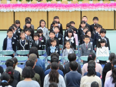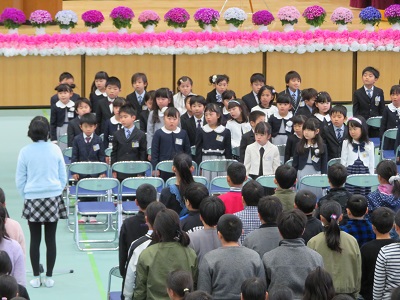 1組から順番に担任に名前を呼ばれると、みんな元気に返事をして起立できました。