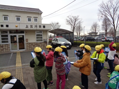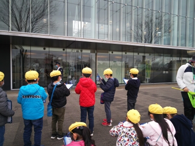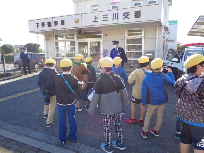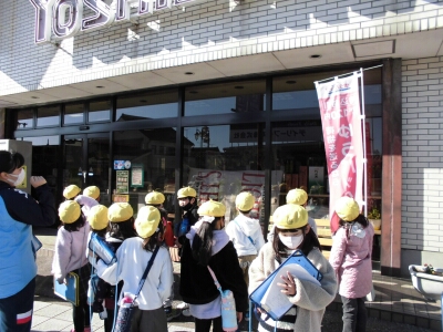 例年のようにグループ毎の探検はできませんでしたが、クラス毎に学区内を歩き、どんなお店や施設があるか見学してきました。普段通らない場所を見たり、改めて見たりすることによって、新たな発見をたくさんしてきたようです。