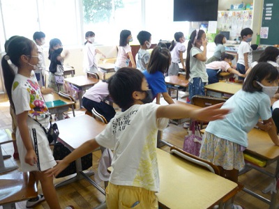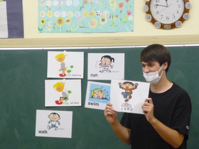 低学年は、体でインプットする活動とクイズやゲームでアウトプットすることで、英語に慣れ親しんでいます。
