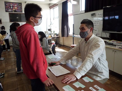 終わった後に話を伺うと、小学生でも随分と英語の会話が続くことに驚いていました。中学校でも、恥ずかしがらずに、自信をもって英語を話してほしいと思います。