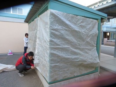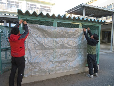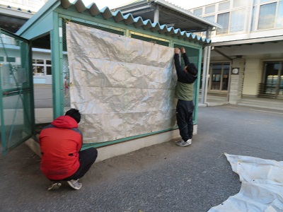 急に寒くなっても困らないように、うさぎ小屋の冬支度をしました。