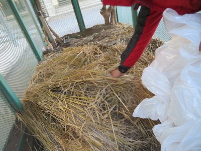 そのわらを、うさぎ小屋に敷き詰めていきます。