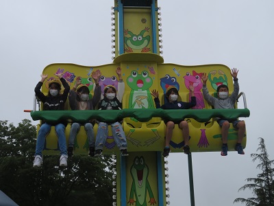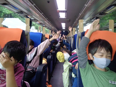 バスの中では、声を出さないように工夫したレクをしながら行きました。