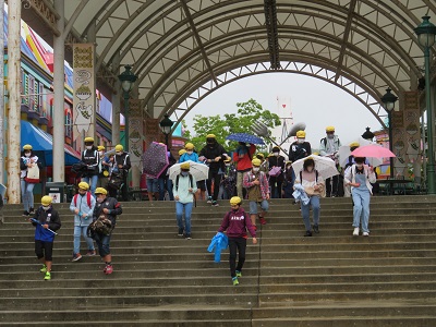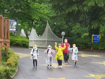 小雨の中でしたが、楽しそうに班別活動に出かけました。