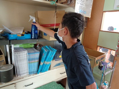 各教室の消毒用アルコールの補充もします。