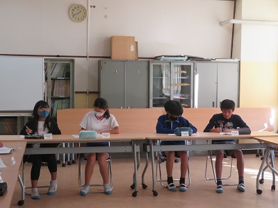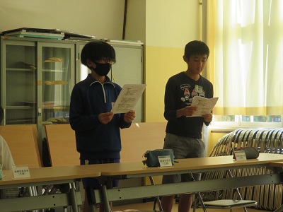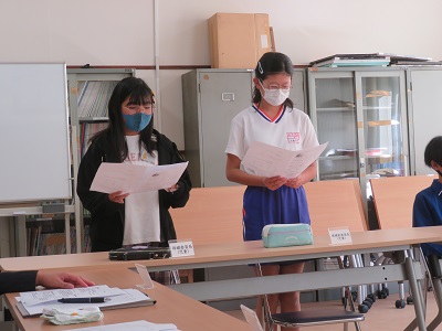次に、給食委員会の児童から全校生対象に行った、食生活アンケートの結果発表がありました。