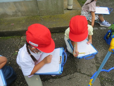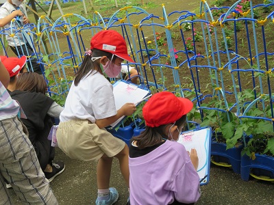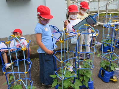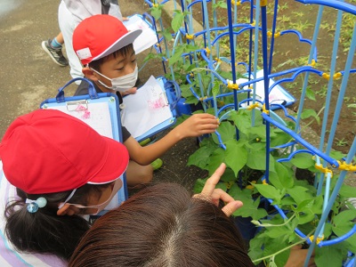 ツルや葉っぱの様子をよく見て、手で触ったりしながらよく観察していました。