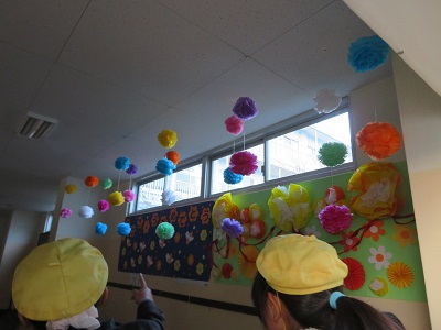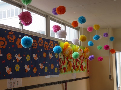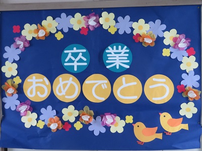 図書ボランティアの掲示グループの方達が、6年生の卒業を祝って、昇降口を素敵に飾ってくれました。
