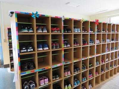 下駄箱も、カラフルに縁取られ、ウキウキしてきます。